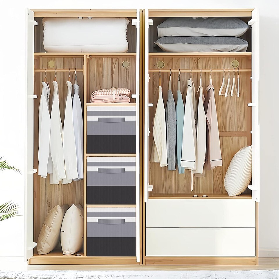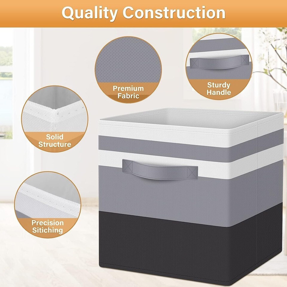 IDEAL SIZE: Each basket organizer measures 10.5" x 10.5" x 11"(L*W*H). These storage bins are ideal for placing in closets, bookshelves, and wardrobes to store and organize items in your office or home. The design of the handle makes it easy to push and pull for daily access to items.