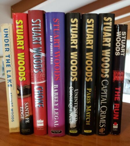 Lot of 11 Stuart Woods Hardcover Books Paris Match Stone Barrington Unintended Consequences Stone Barrington Class Act Stone Barrington 2021 Smooth Operator with Parnell Hall A Teddy Faye Novel featuring Stone Barrington 2016 Hothouse Orchid 2009 Choke The Run Santa Fe Edge Barely Legal Capital Crimes, A Will Lee Novel 2003 First Edition Under The Lake 1987 Book Club Edition Light shelf wear Paris match has a library stamp, but no circulation markings Choke has significant dust cover tears and an inscription The Run is a book club edition Hothouse Orchid has a small smudge to one of the cover pages No staining, creases, turned down pages Binding appears to be tight. In my opinion, overall condition is good - Great titles at a great bargain for a Winter Fireside reading list!