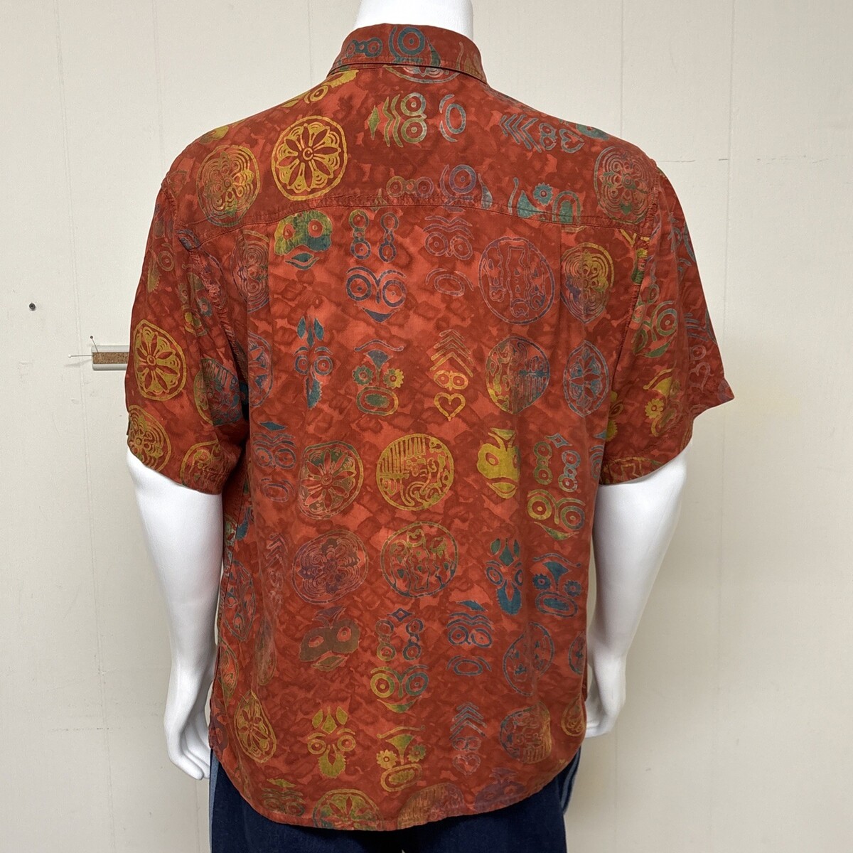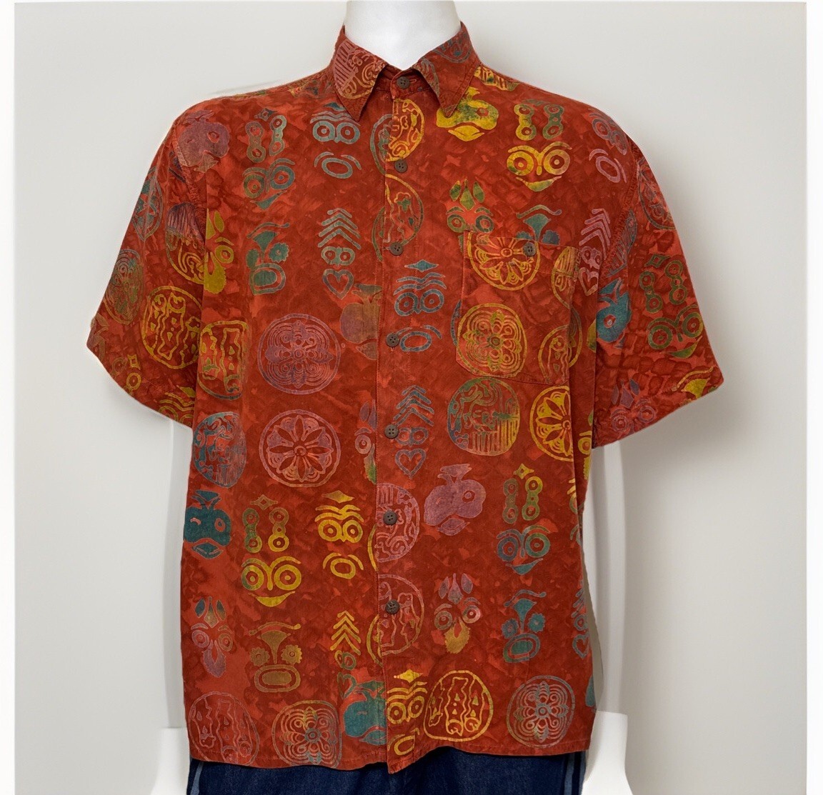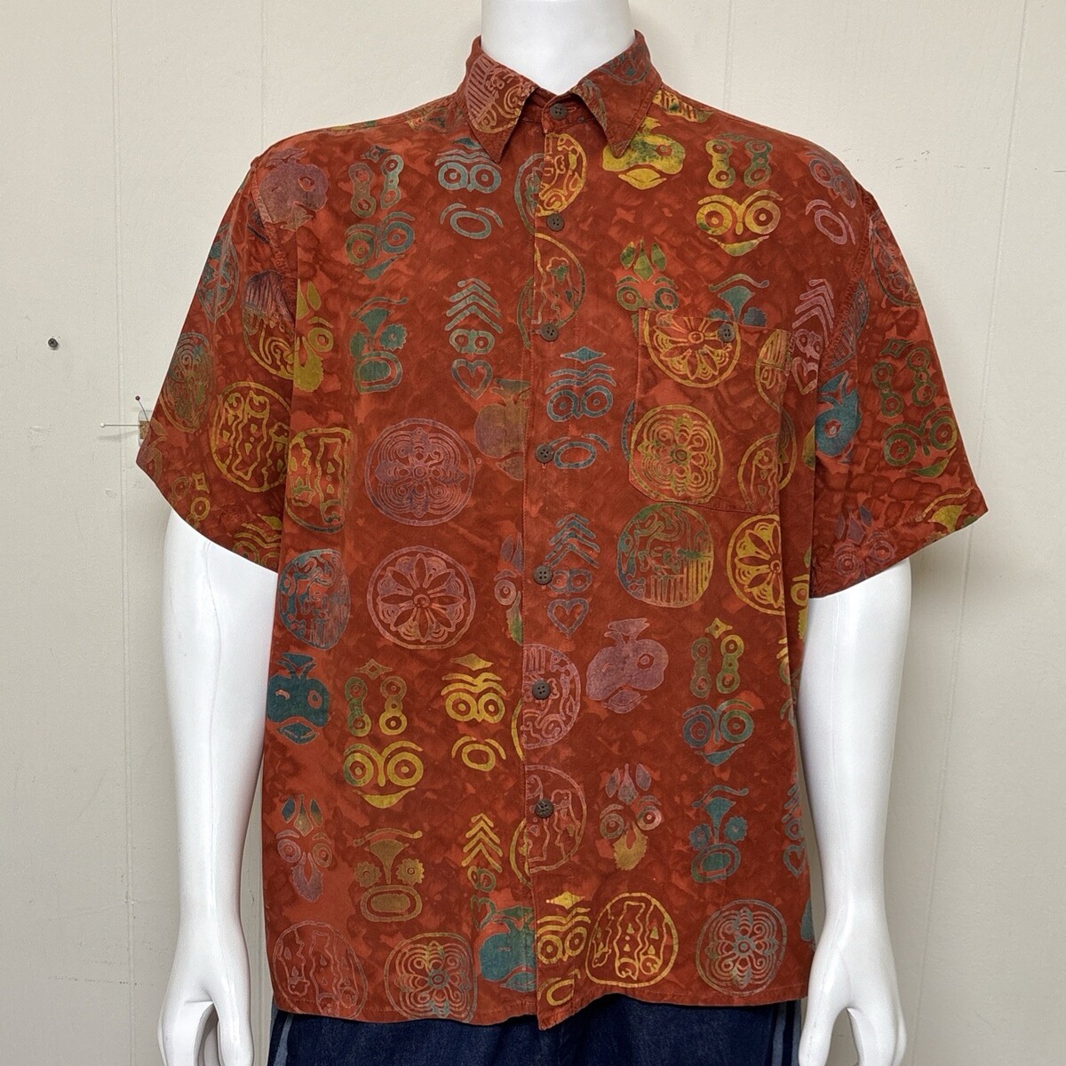 Territory Ahead Shirt Mens L Tribal Batik Short Sleeve Button Henna Tie Dye Y2K