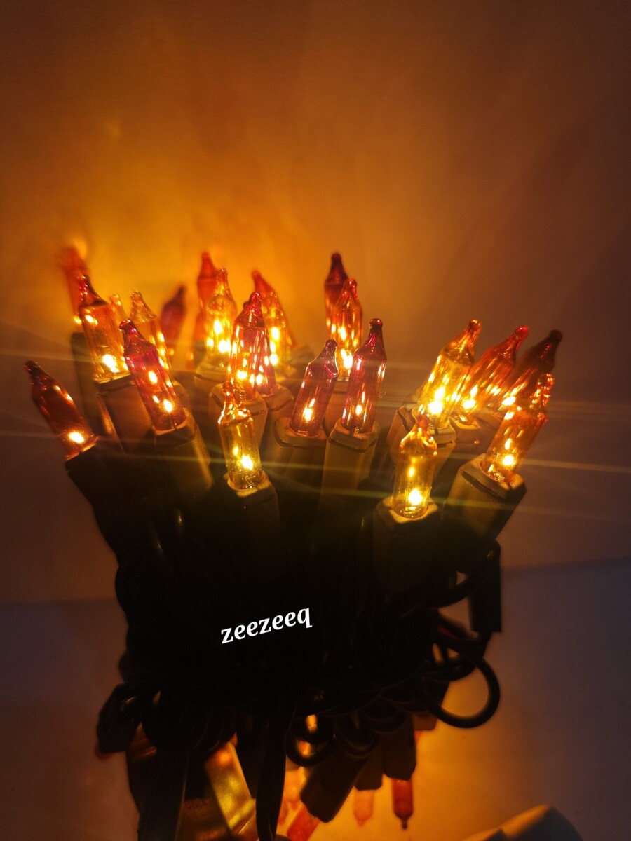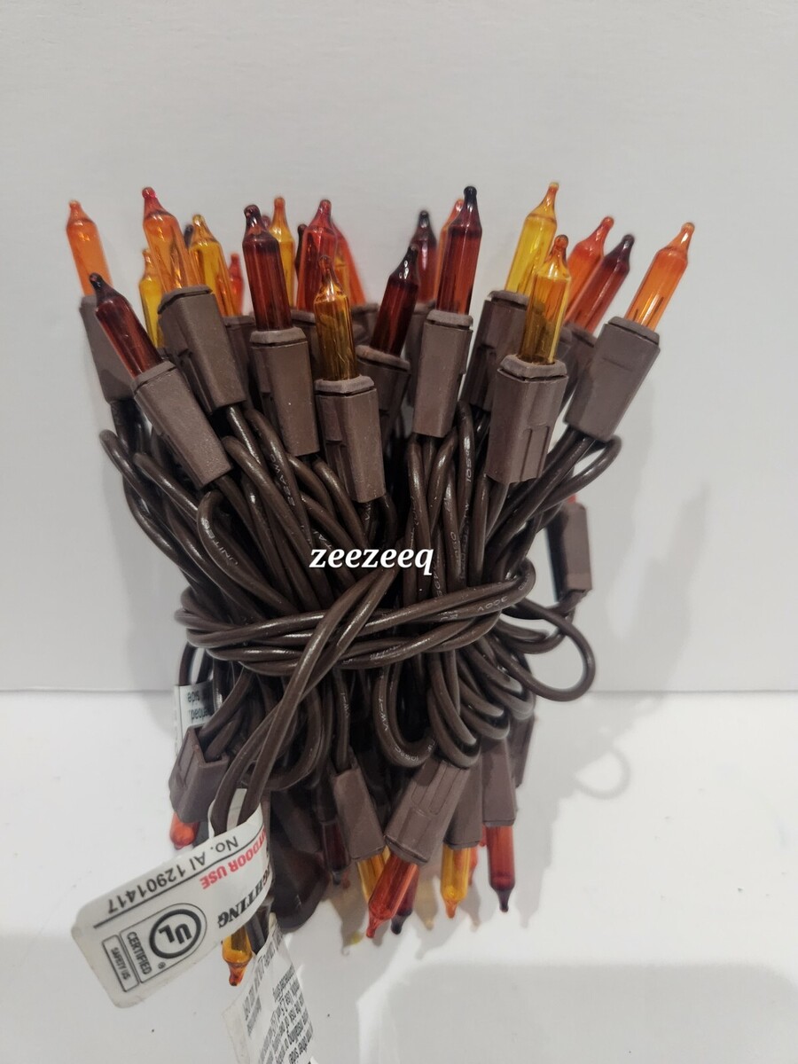 Thanksgiving Fall Harvest Brown Orange Amber 50 String Lights Brown Cord
