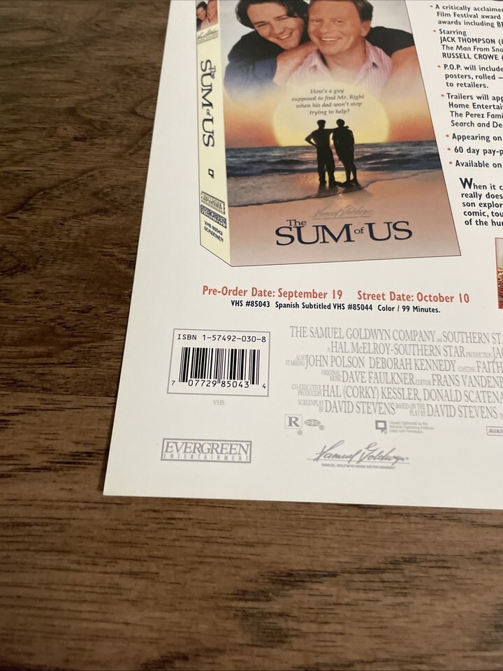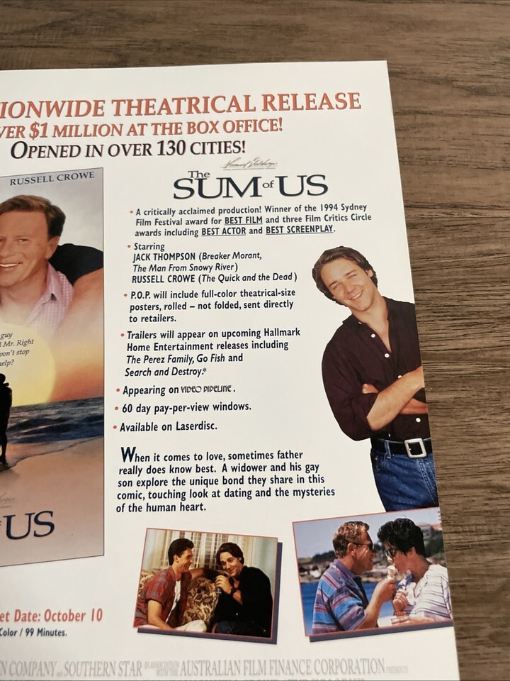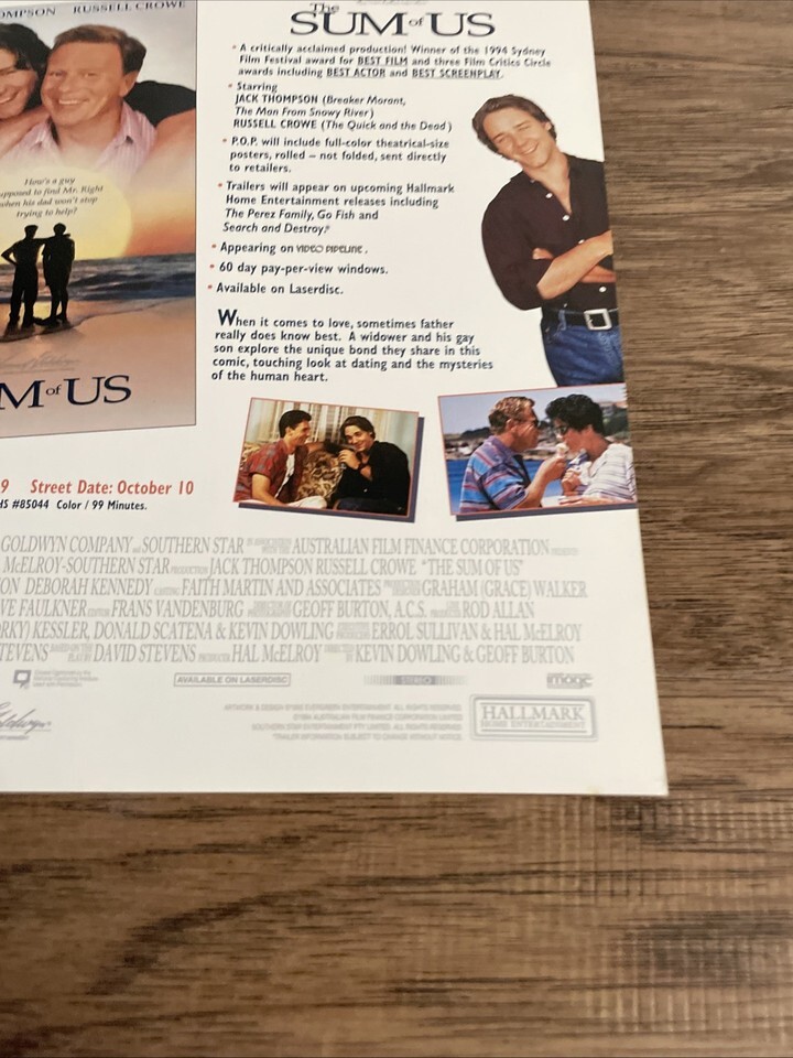 The Sum of Us Original Press Kit Sheet Video Store Promo Russell Crowe KG JD