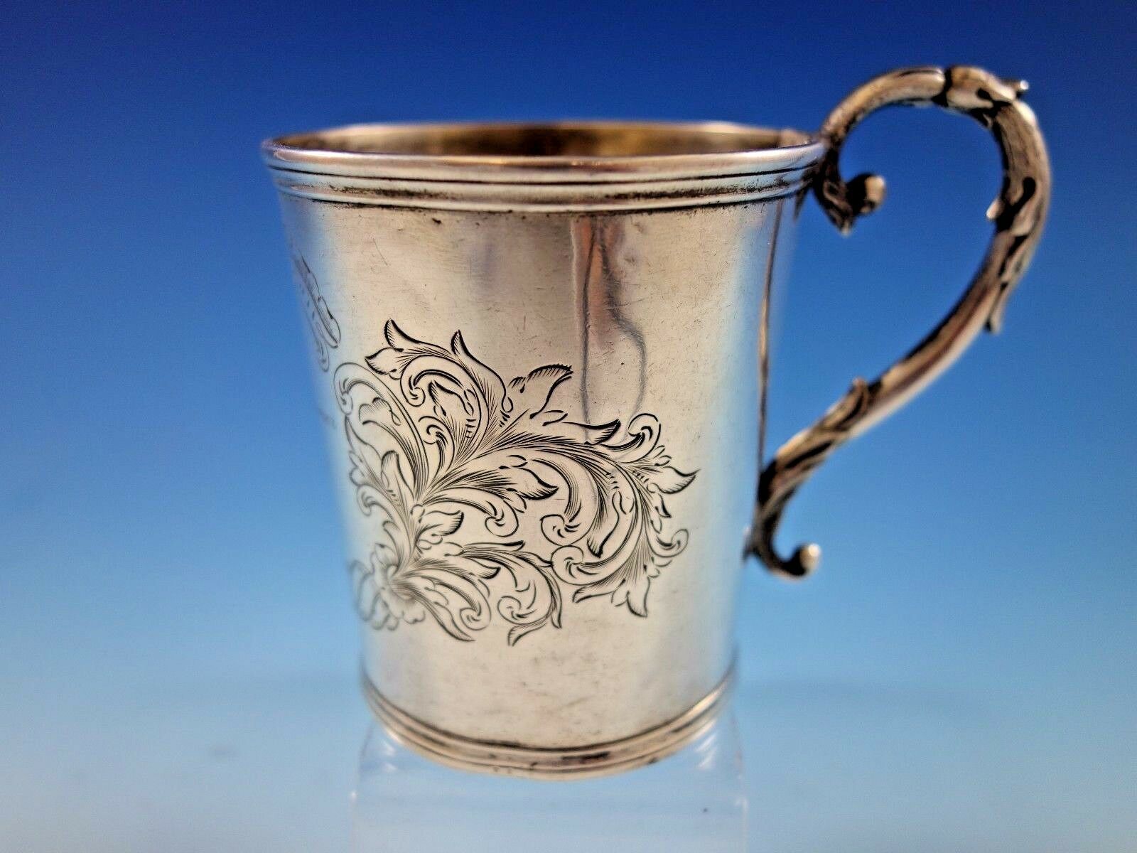- Tifft & Whiting Coin Silver Baby Child's Cup Mug B.C. Scroll Work Dated 1-18-52