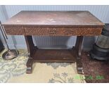 Made of rare tiger oak, this antique quarter sewn library table is a timeless piece that yells in historic style.