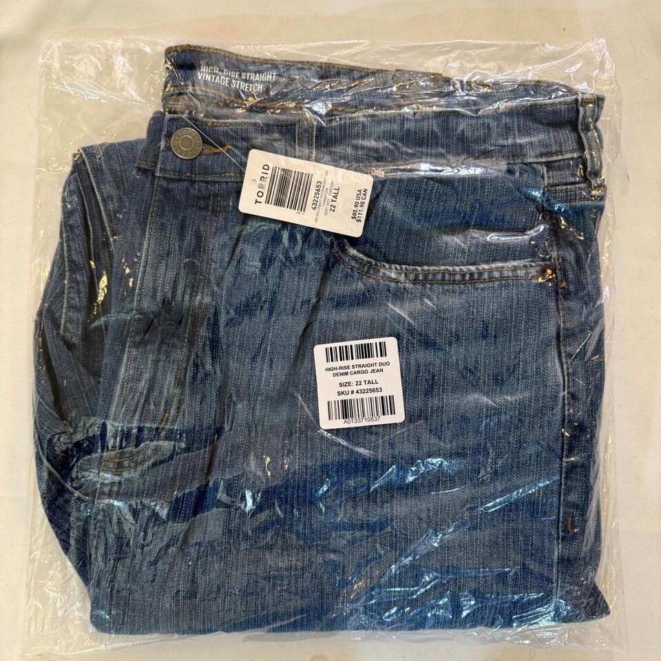 - Torrid High-Rise Straight Duo Denim Cargo Jeans Blue Stretch 22 Tall NWT