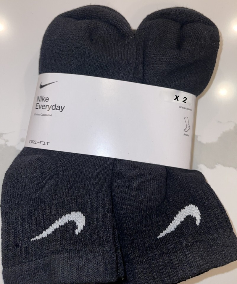 TWO PAIR NIKE ANKLE EVERYDAY TRAINING SOCKS BLACK DRIFIT