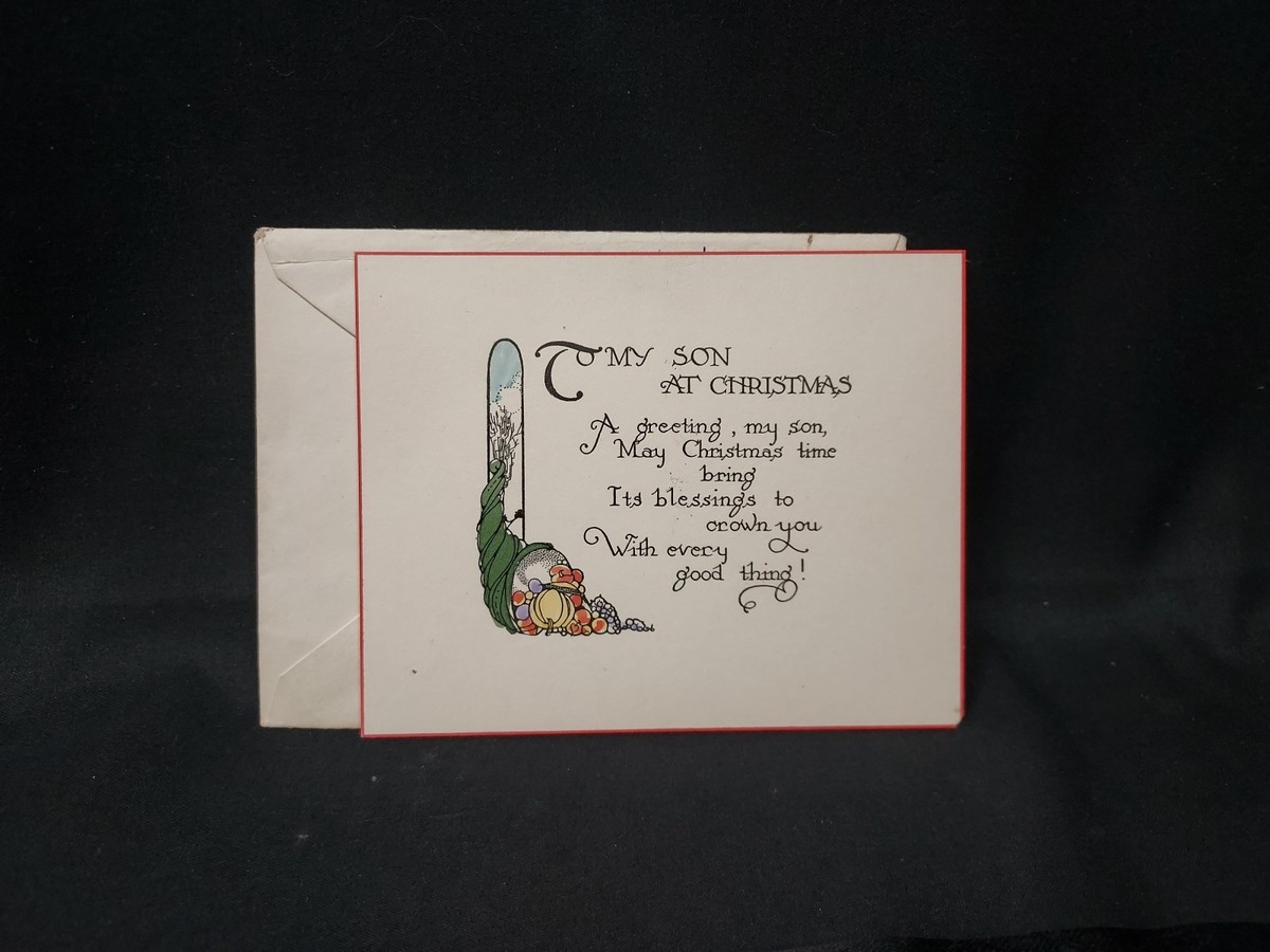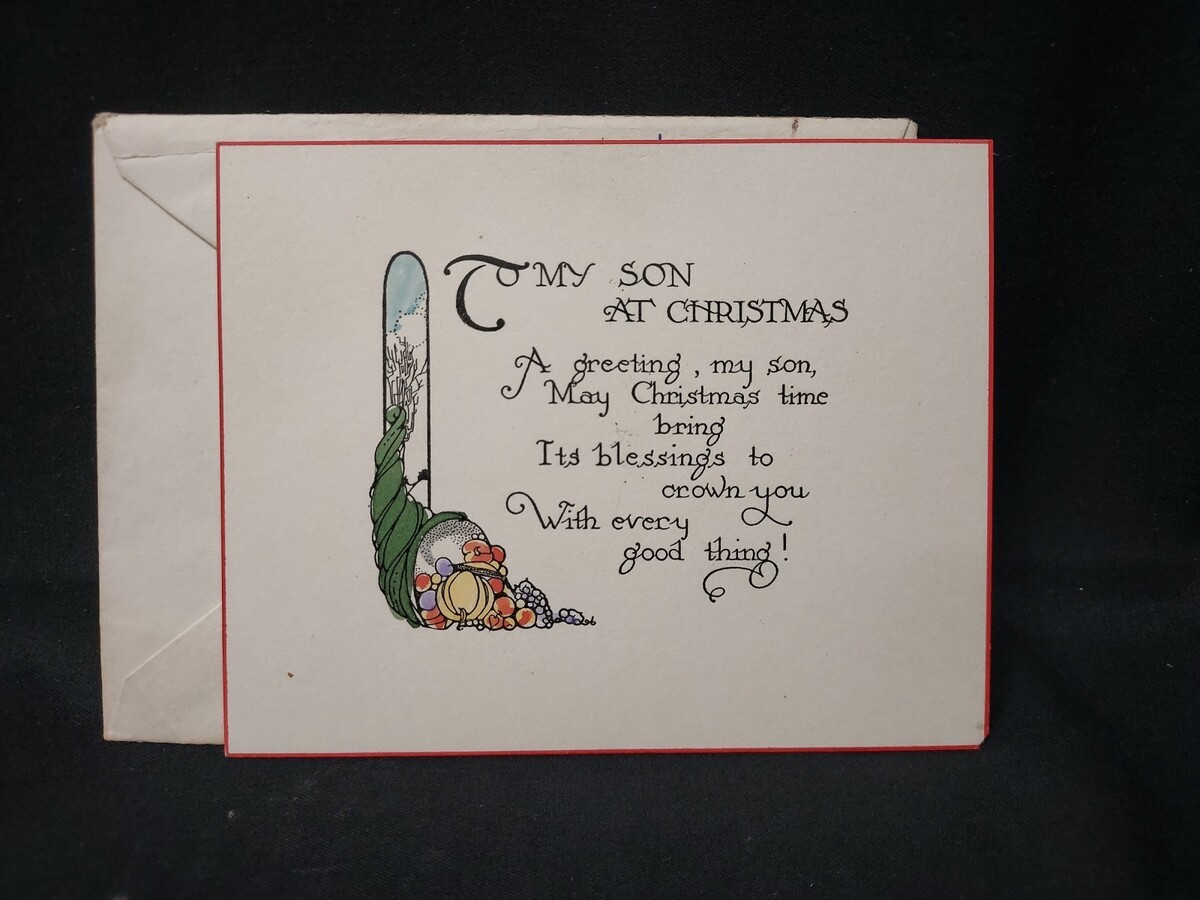 Unused Early 1900's Christmas Greeting Card & Envelope "To My Son At Christmas"