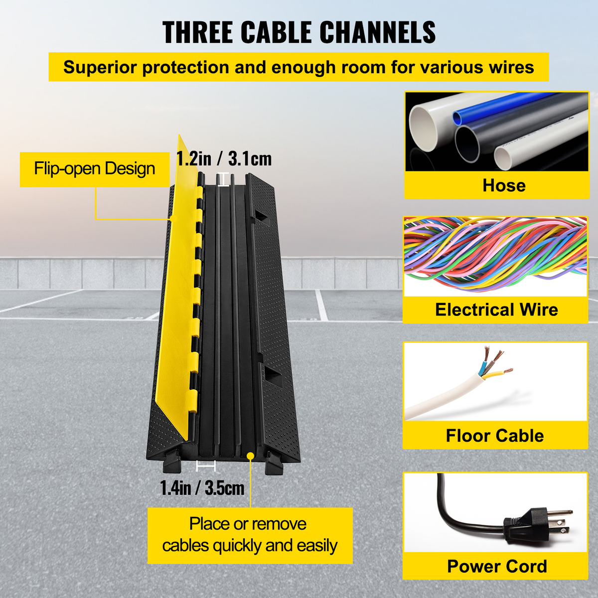 - VEVOR 3 Channel Rubber Cable Protector Ramp, 1.2x1.2 in, Wire Cord Cover Ramp