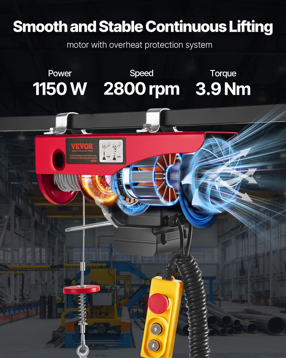 - VEVOR Electric Hoist, 1320 lbs 40 ft Lifting, 1150W, 14ft Wired Remote Control