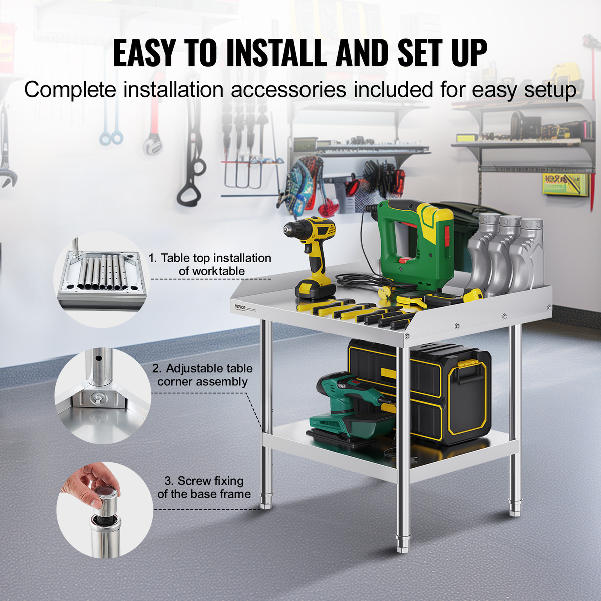 - VEVOR Stainless Steel Adjustable Work Table 24 x 28 x 26 in, 3-Sided Backsplash
