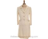 VTG 1970s Lord & Taylor Ivory Brocade Dress Suit Mod Rhinestone Buttons M