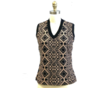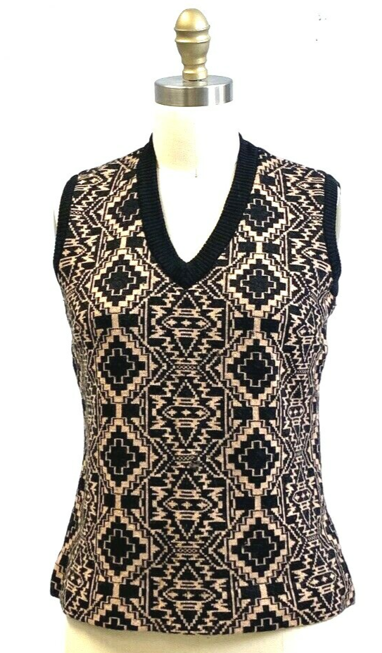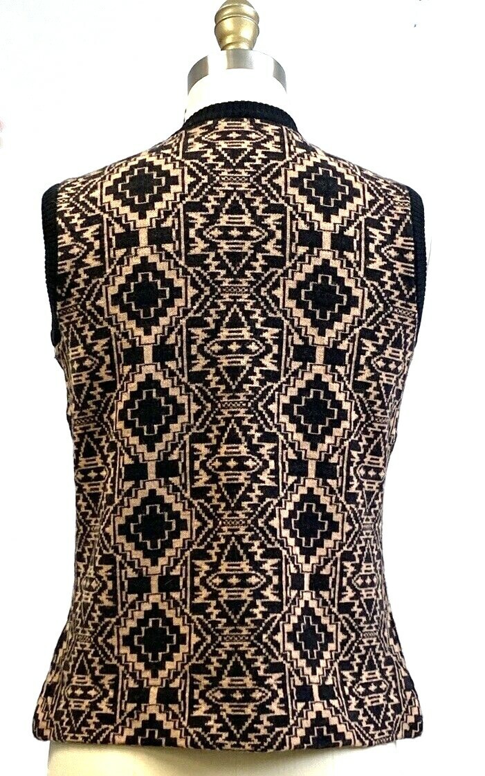 VTG 60s 70s Wool Sweater Vest Black Taupe Geometric Icelandic Style M