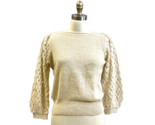 VTG 80s Beige Wool Blend Sweater Basket Weave Puff Sleeve Boatneck M