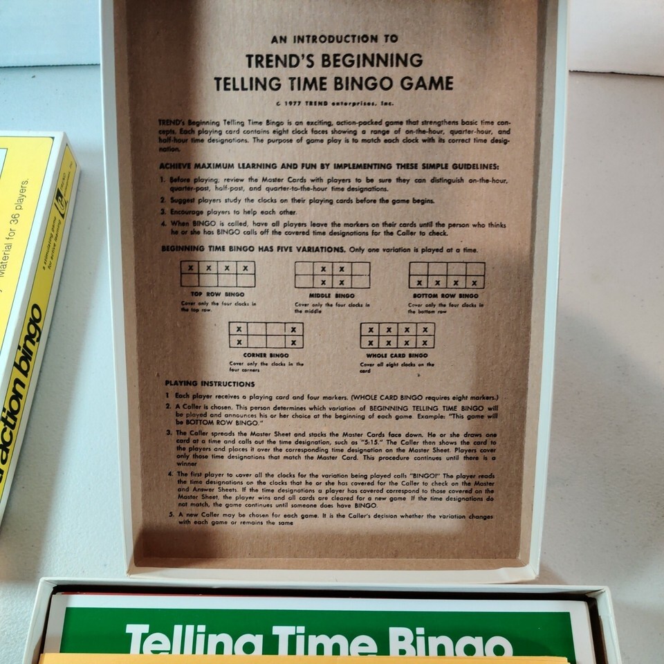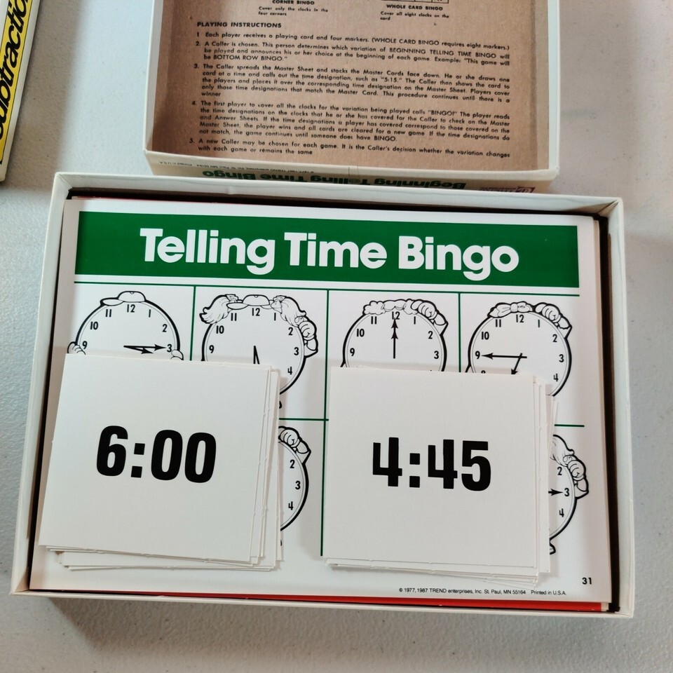 - VTG Beginning Telling Time Bingo & Subtraction Bingo Pre-K & K Educational Games