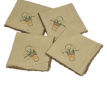 Primary image for VTG Hand Embroidered Linen Napkins Set of 4 Yellow Floral Basket Crochet Trim