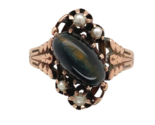 - Victorian 10k Rose Gold Tiger's Eye Quartz and Pearl Ring Size 6.25 (#J7078)
