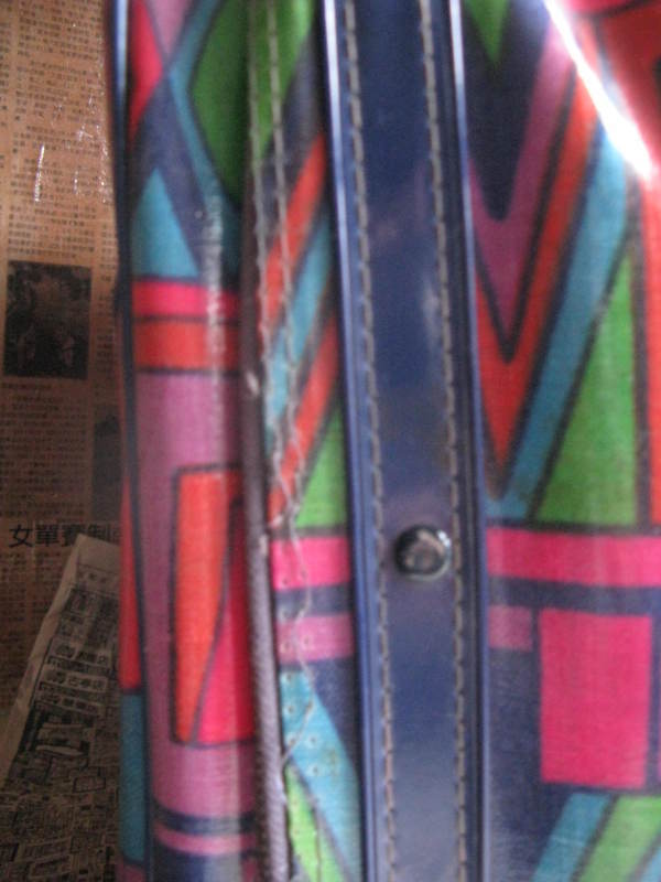 Vintage 60s Pop Art overnight suitcase in bright psychedelic hues. This bag is used and has small issues...shight fading on top, lock but no key, cracking on flap's trim, zipper are oxidized but all work. Very clean inside and no funky smells. Measures 18" by 12" by 4". Super mod and cute and very useable or collectable. love to shop and I'm closet cleaning the stuff I didn't wear so I have room for new. I will be listing designer fashions all month.Please ask all questions before bidding as all sales are final. I will combine shipping for multiple purchases. Please contact me for international shipping. Please remember that I am the West coast of the USA so shipping to foreign destinations or the East coast can take up to a week longer to reach you. I ship the day after you pay and provide tracking info at that time so you know where your cute purse is. Thanks for understanding!