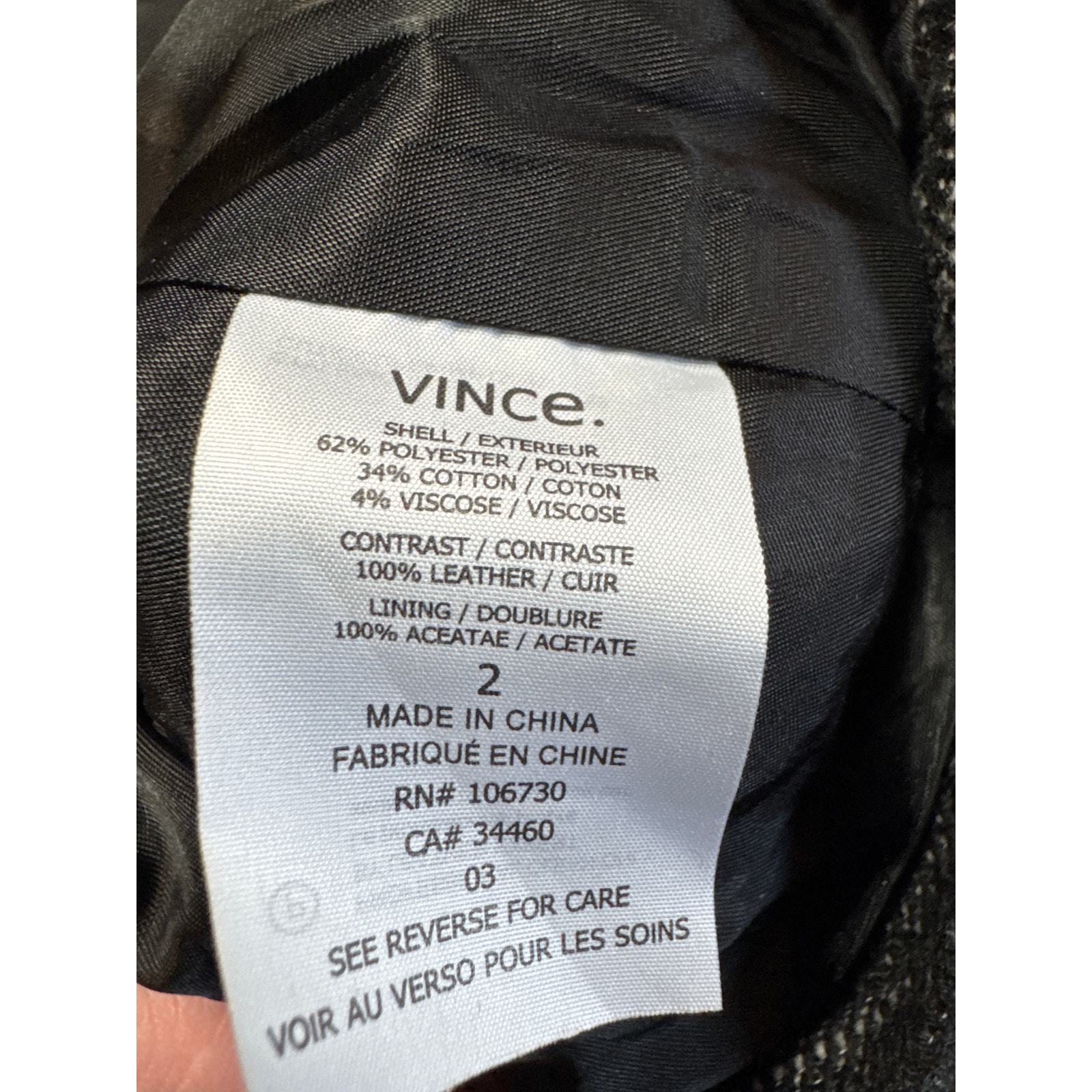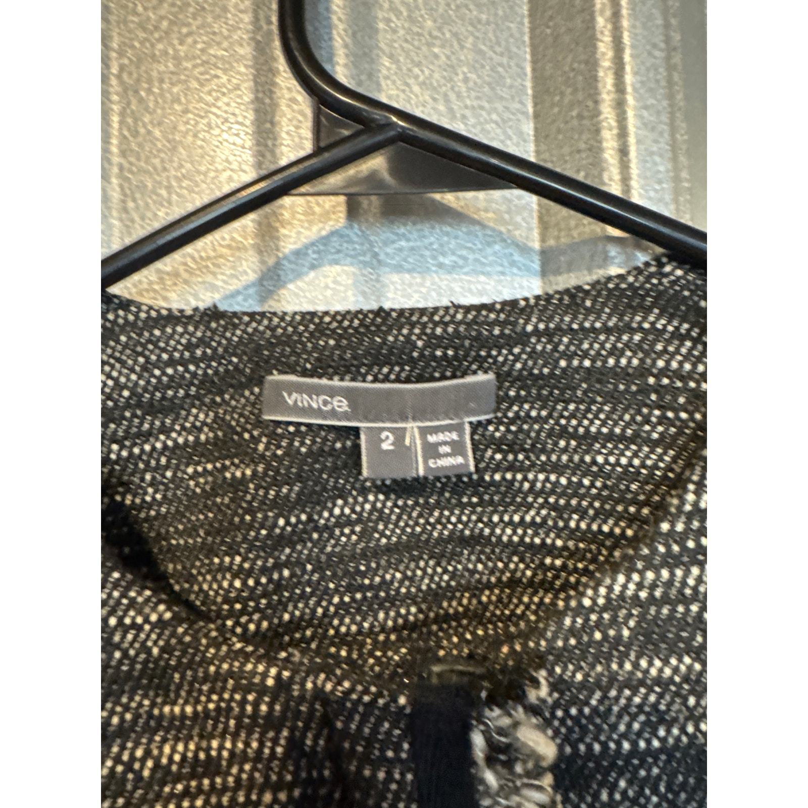 - Vince Black White Tweed Zip Blazer Jacket Career Fringe Trim Womens Size 2
