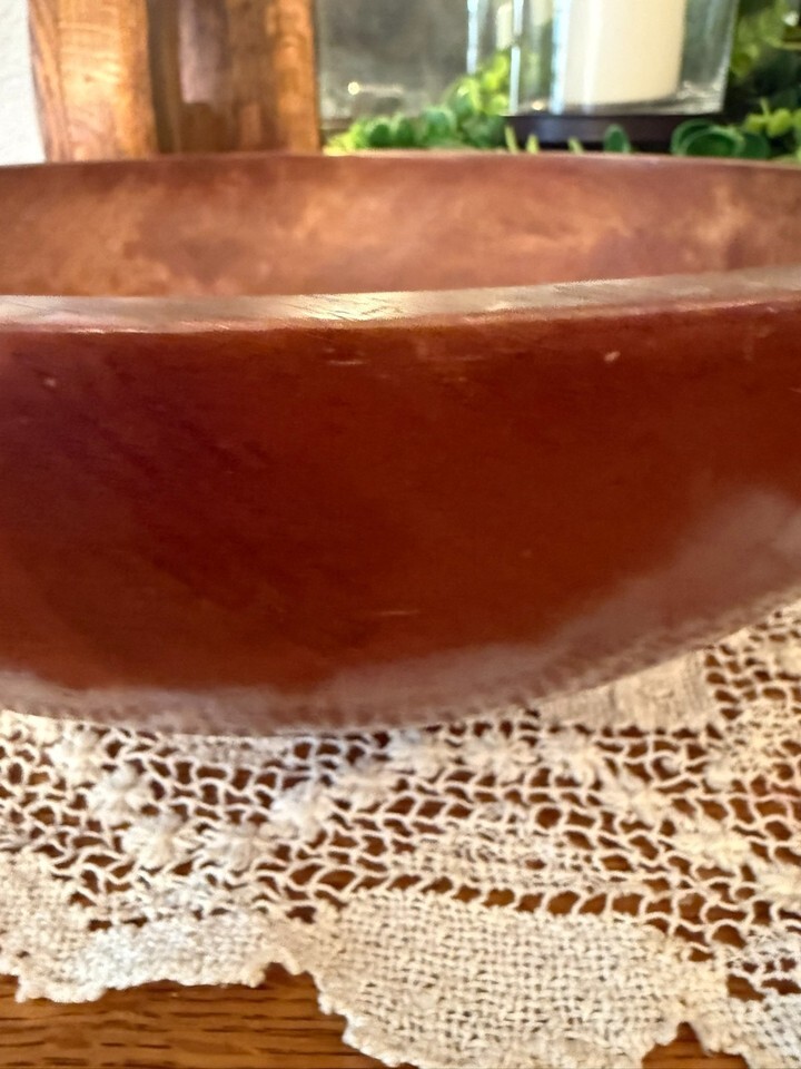 With its rich patina, smooth contours, and generous size, it serves beautifully as a rustic fruit bowl, centerpiece, or decorative accent. No two are alike?this is not a mass-produced item, but a true example of vintage folk artistry.