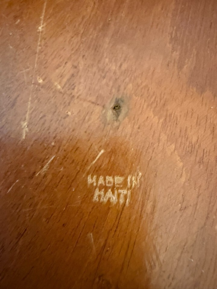 Bring warmth and timeless craftsmanship to your home with this stunning vintage hand-carved wooden bowl, marked Made in Haiti. Likely crafted between the 1960s and 1980s, this bowl reflects the height of Haiti?s artisan woodcraft export era?each swirl in the grain a tribute to its handmade heritage.