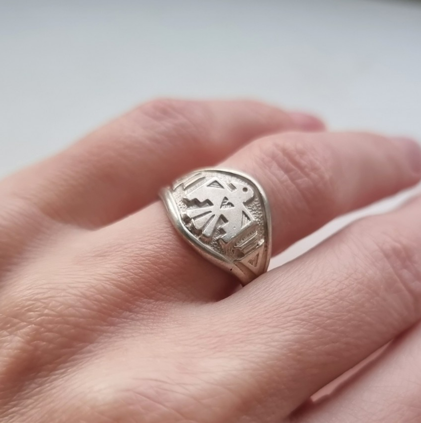 This vintage 50s Bell Trading Thunderbird Navajo 925 sterling silver ring in size 9 is a stunning piece of Native American jewelry. The intricate design and high-quality craftsmanship make it a standout accessory for any collector or admirer of traditional American Indian artistry. Made in the United States with sterling silver, this ring exudes a sense of history and cultural significance, perfect for adding a unique touch to any outfit or collection.