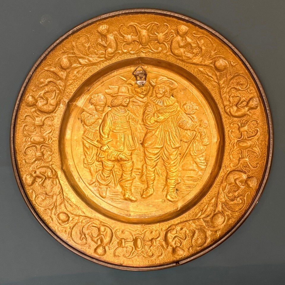 - Vintage Dutch Peasant Brass Wall Plate 14.5" Embossed Made in Holland