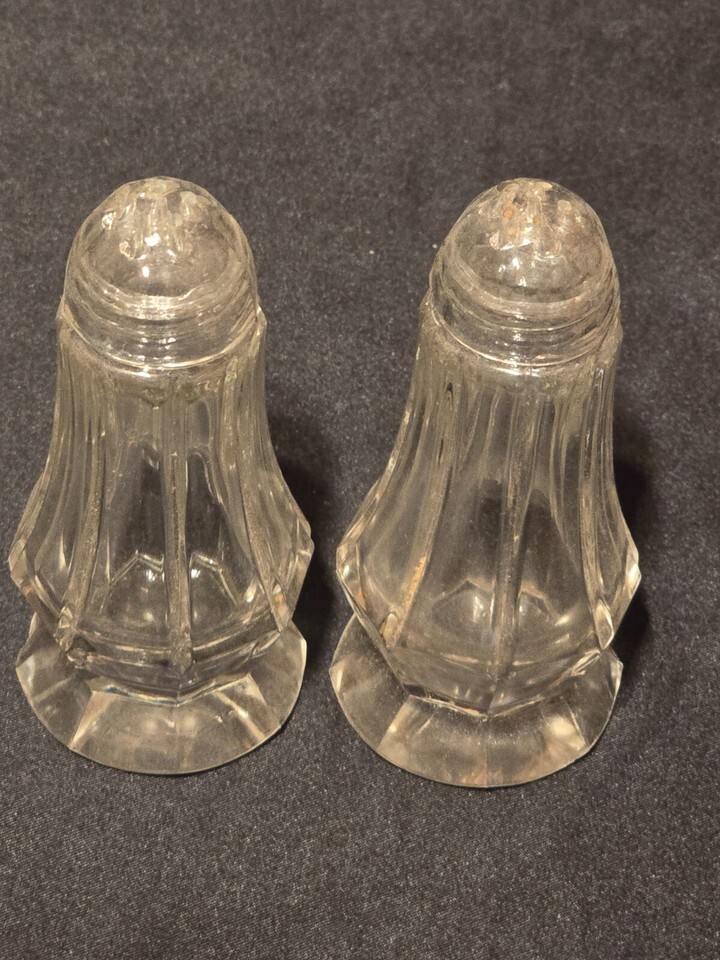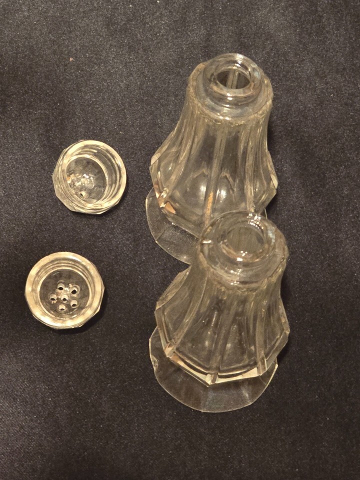 - Vintage Glass Salt & Pepper Shakers, Tapered Octagon, Footed, Dome Screw-On Lids