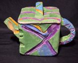 - Vintage HANDMADE Stoneware Pottery Green Purple Blue DECORATIVE Teapot - SIGNED