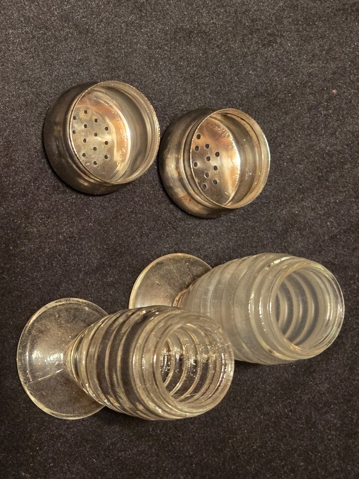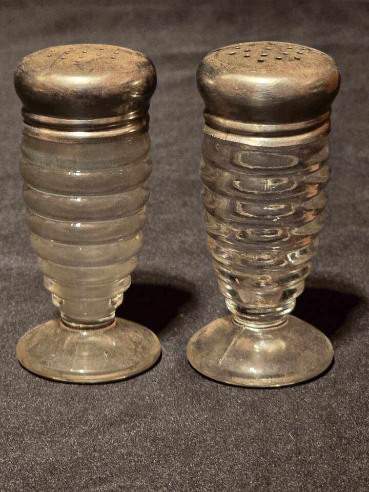 - Vintage Hazel Atlas Concentric Rings Salt & Pepper Shaker Set With Metal Lids