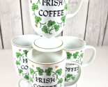 Primary image for Vintage Irish Coffee Footed Mugs Set of 4 Gold Trim Shamrocks 8 oz Cups