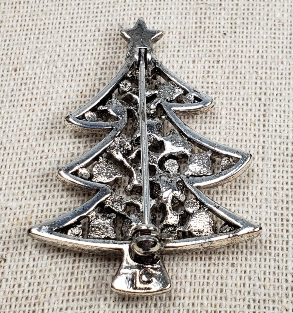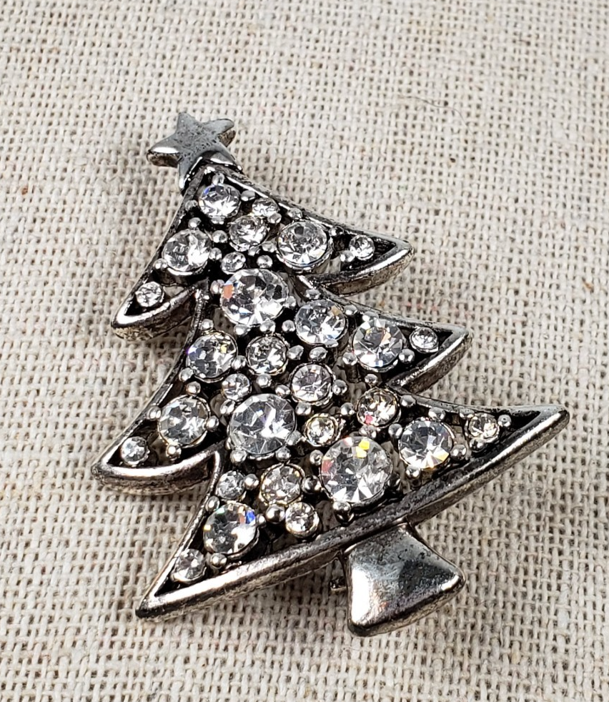 - Vintage Liz Claiborne Clear Crystal Rhinestone Christmas Tree Silver Tone Brooch