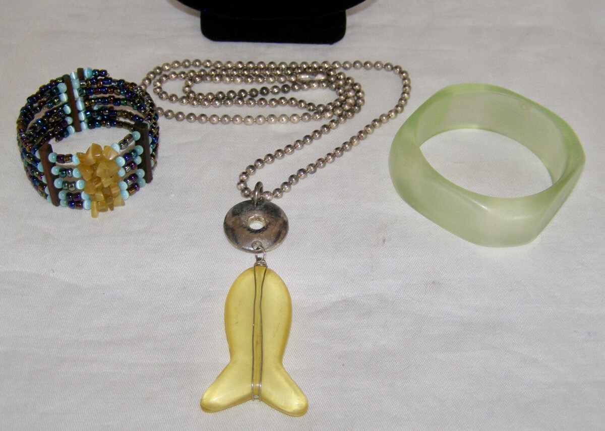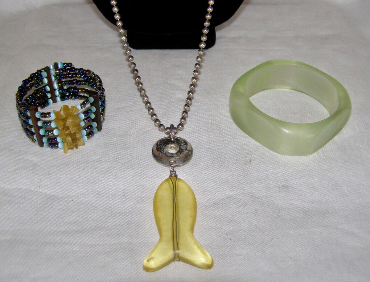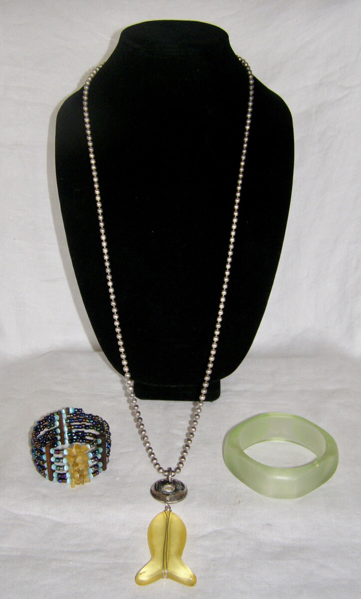 LOT OF 3- LUCITE PENDANT NECKLACE+LUCITE BRACELET+BEADED BRACLET |