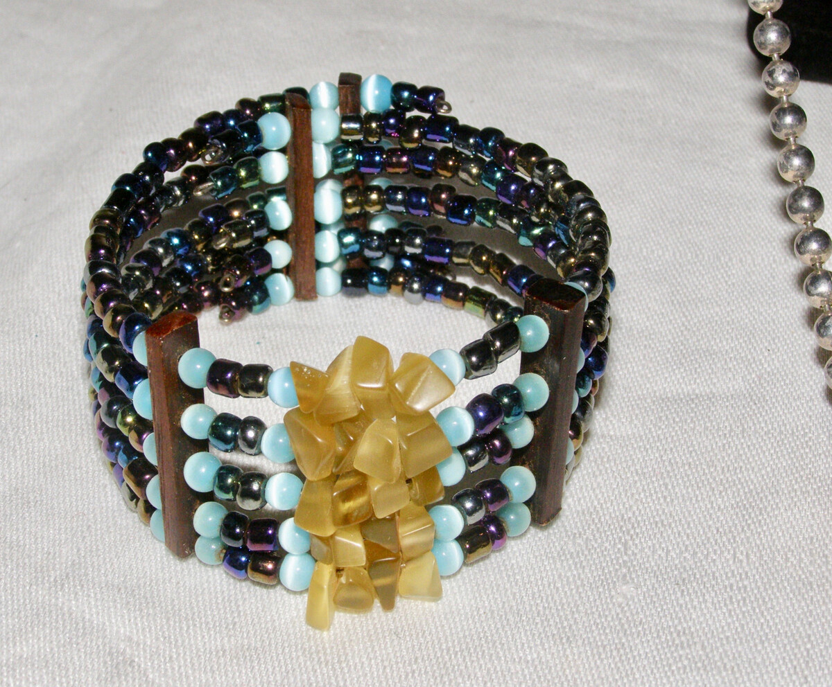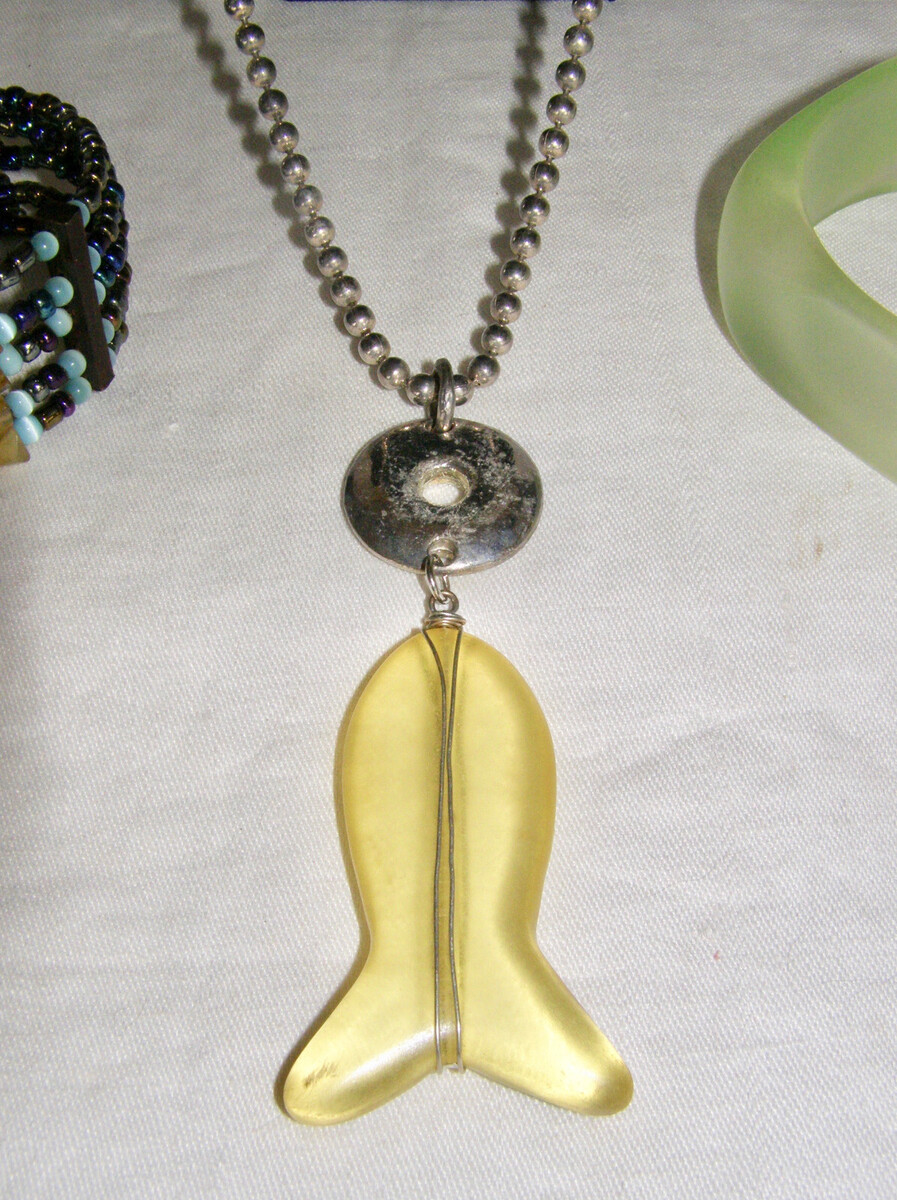 LUCITE PENDANT & SILVER NECKLACE + LUCITE BRACELET + BEADED BRACE |