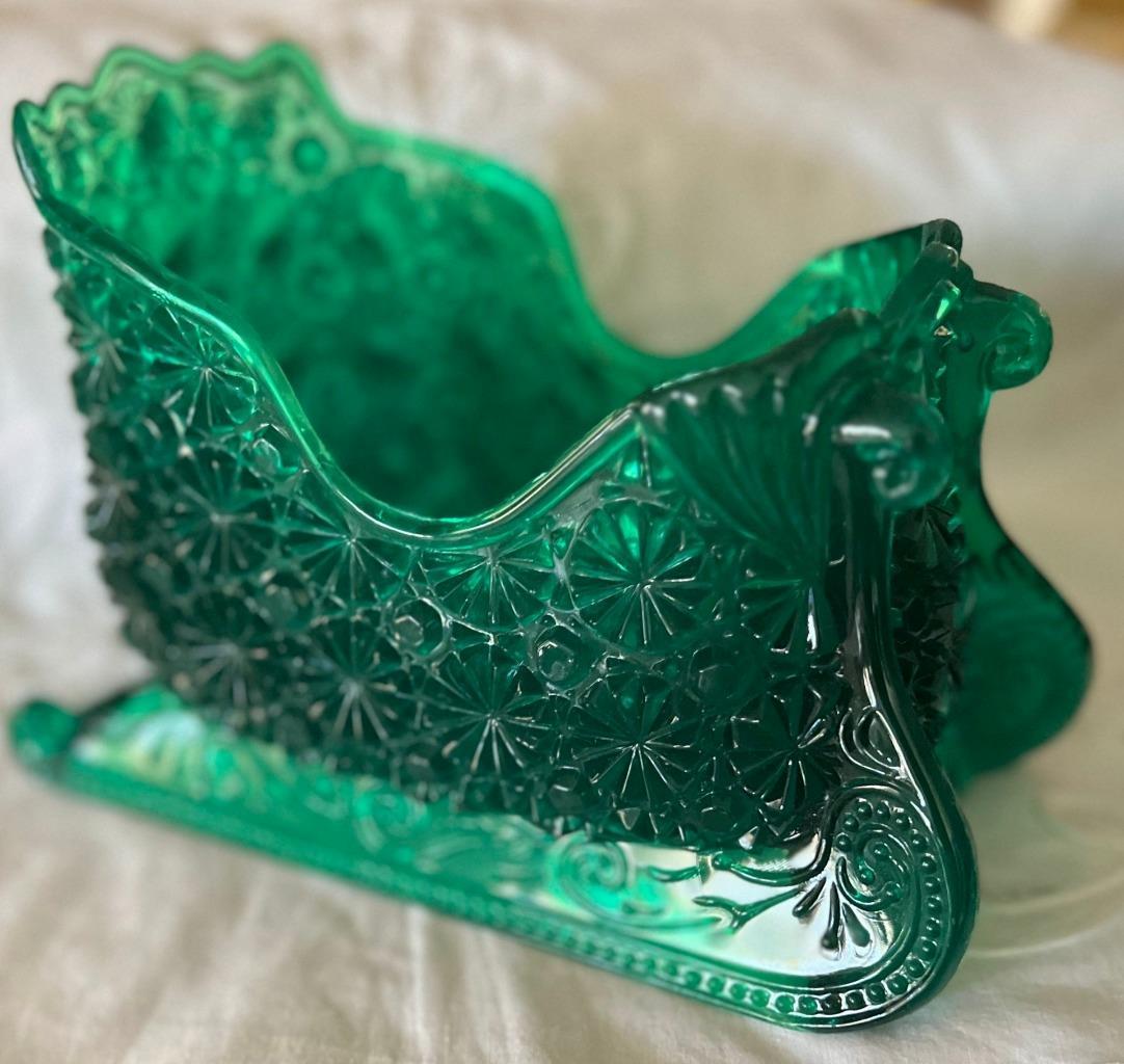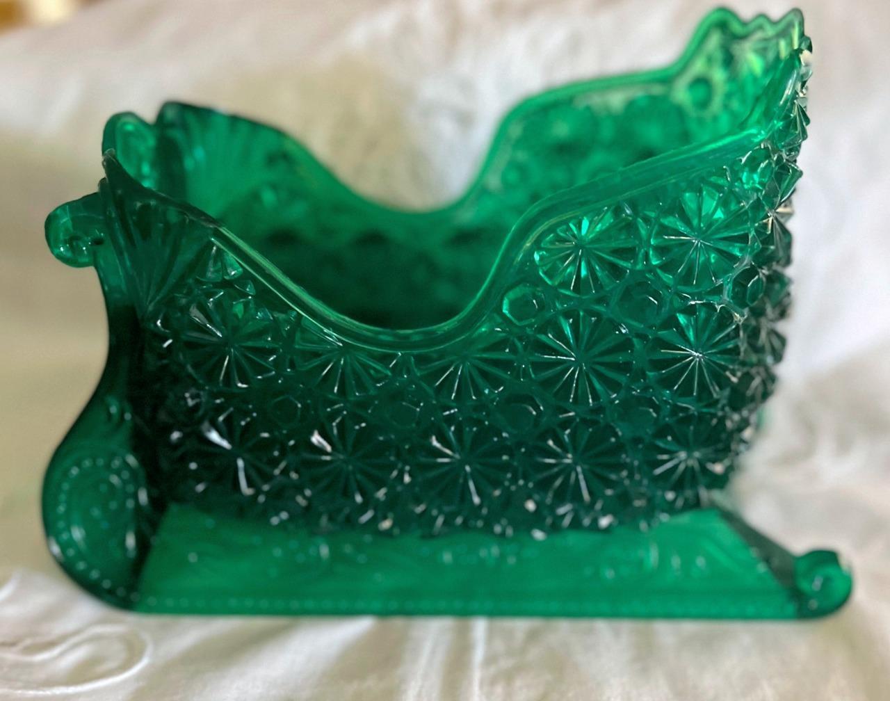 Vintage MCM Green Lucite Sleigh Christmas Decor Loomco Daisy & Button 6" Tall