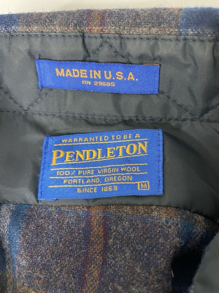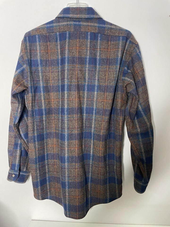 - Vintage Pendleton Virgin Wool Button Down Flannel Shirt Medium Brown Blue Plaid