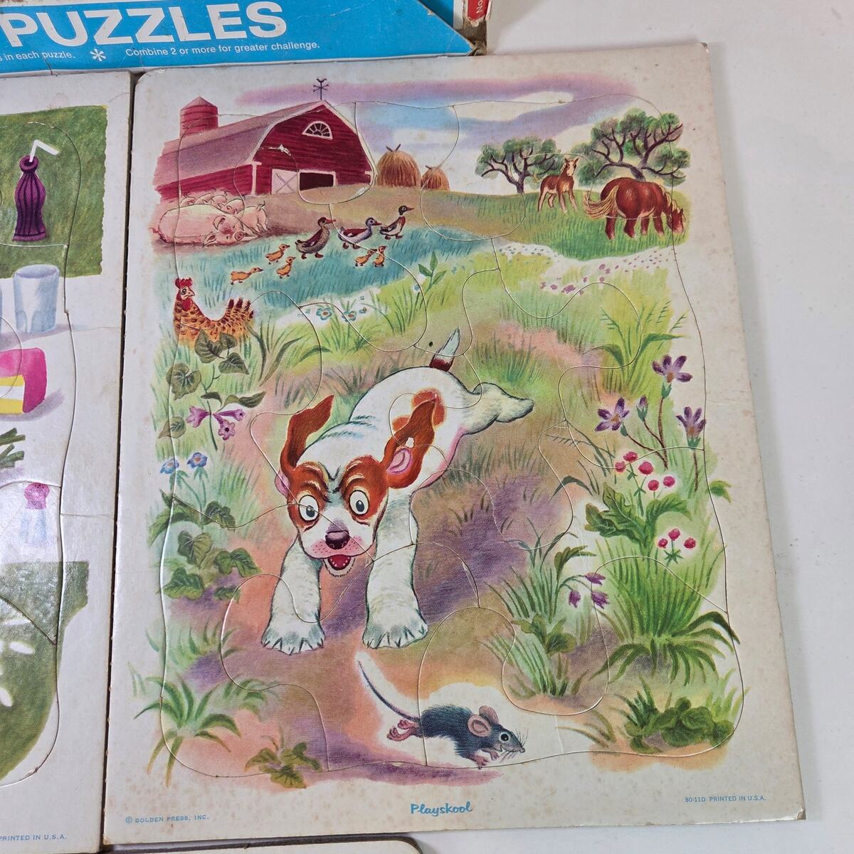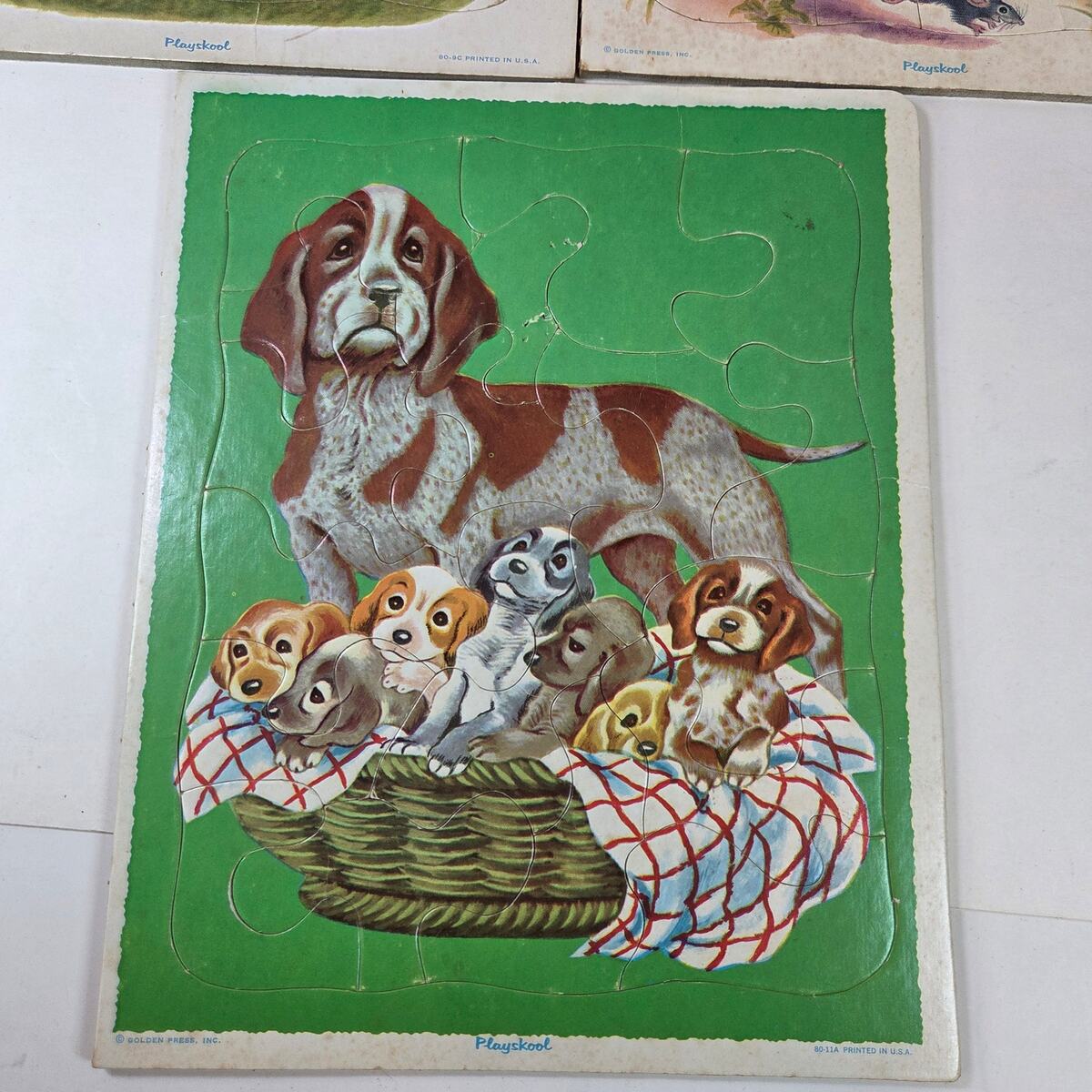 Vintage Playskool Golden Book Animal Jigsaw Puzzle Lot of 3 w/ Box 1980s