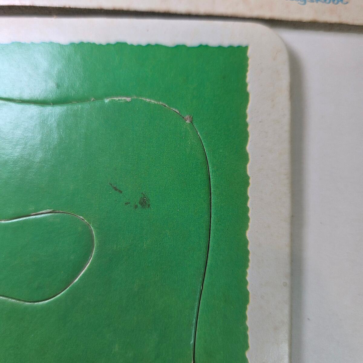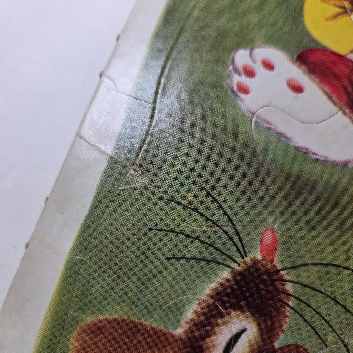 Step back into the 1980s with this charming Playskool Golden Book Jigsaw Puzzle set. This lot includes 3 animal-themed tray puzzles (featuring dogs, puppies, bunnies, and farm scenes) along with the original storage box. Each puzzle is complete with all pieces intact. These puzzles show wear from age and play, including edge wear, creases, and surface marks, but still display beautifully and are great for collectors or nostalgic play.