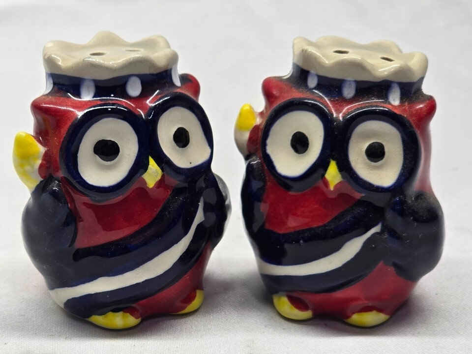 - Vintage Regal Owl Mini Salt & Pepper Shaker Set - Farmhouse Country Birds Rustic
