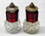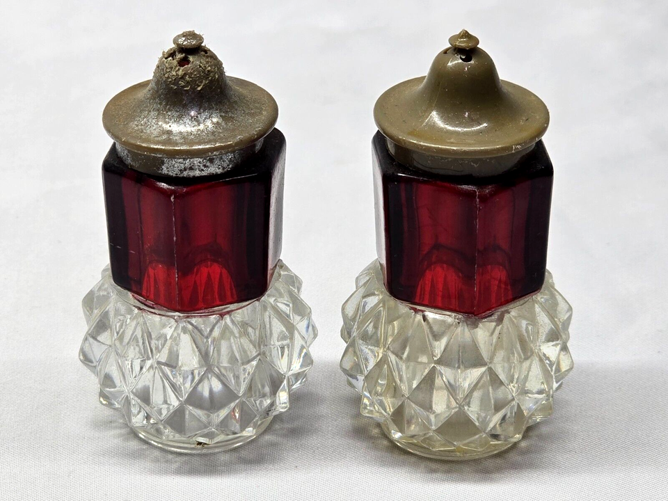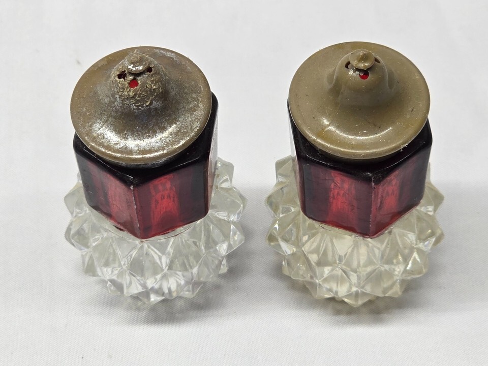 - Vintage Ruby & Diamond Point Salt & Pepper Shaker Set - Acrylic Bakelite
