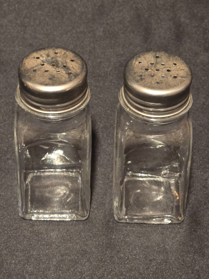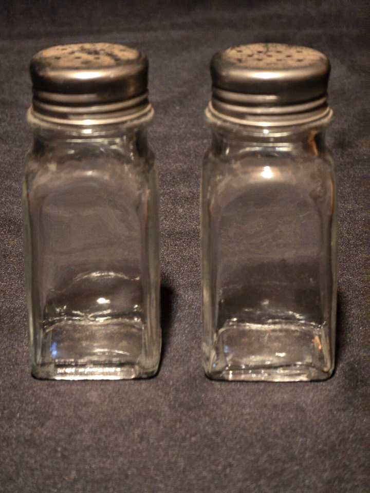Vintage Salt & Pepper Shaker Set - Squared Restaurant Style With Metal Lids