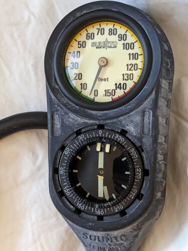 A vendre est un tuyau de console de jauge de boussole de profondeur de pression oceanique vintage Suunto Companion Dive d'occasion non teste.