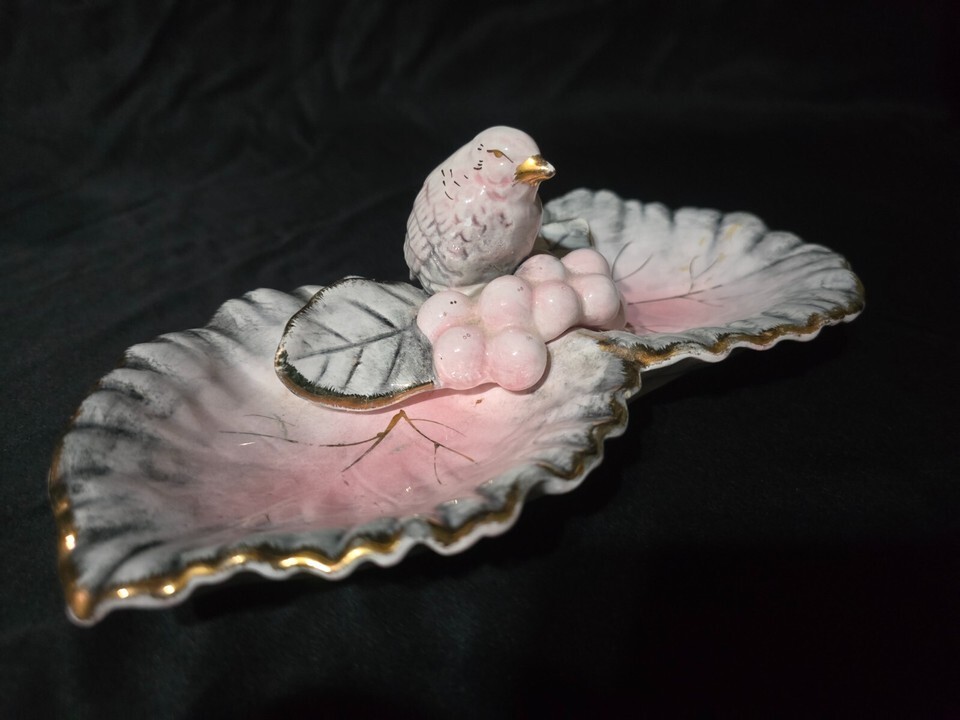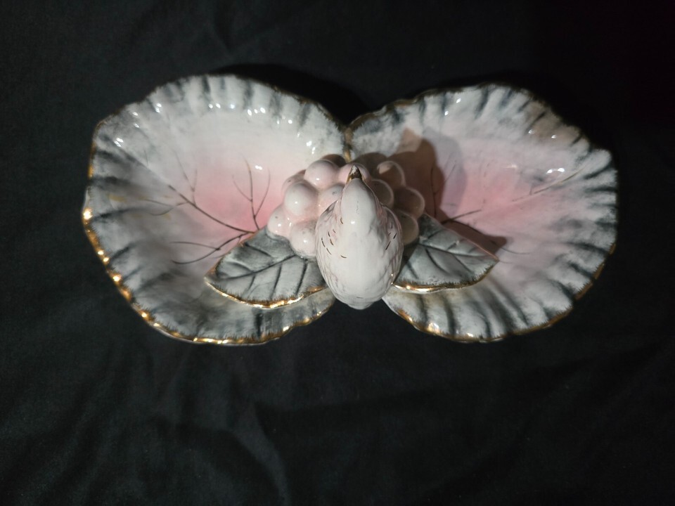 - Vintage UCAGCO Bird Double Leaf & Grapes MCM Trinket Dish Vanity Dresser Tray