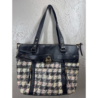 - Vintage Y2k Juicy Couture Tote Large Tweed Wax Coated Handbag Vegan Leather