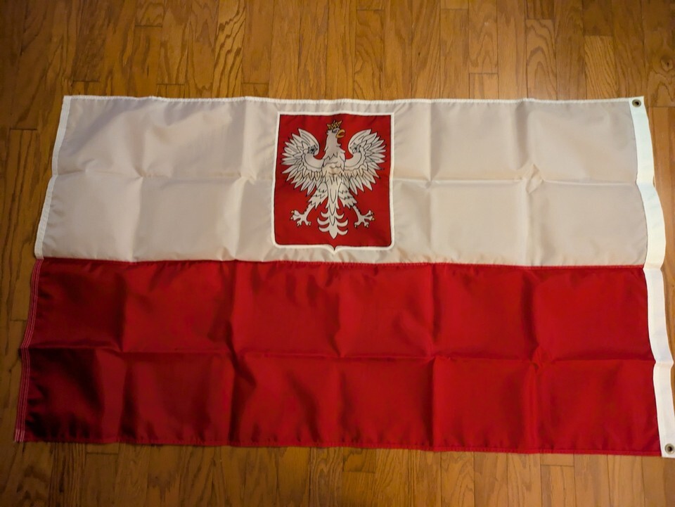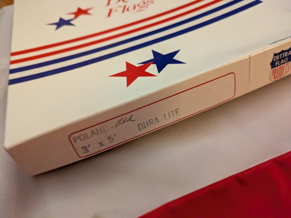 - Vtg Poland National Dura-Lite Nylon Flag 3 X 5 FT Brass Eyelet Dettra New- sh...