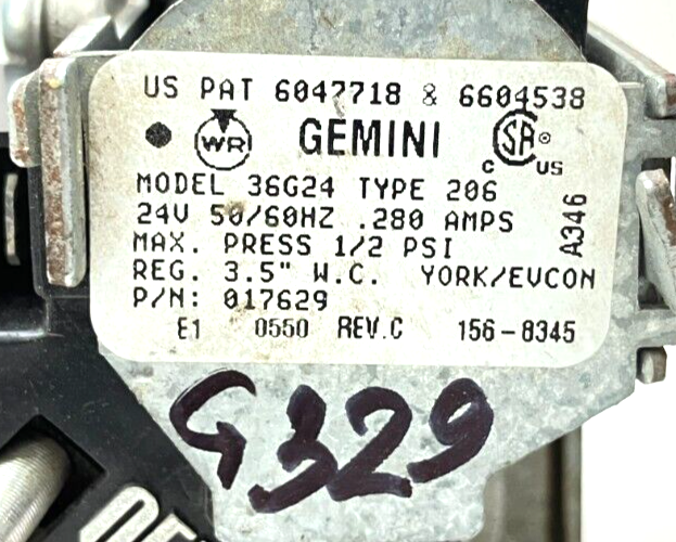 This is White Rodgers Furnace Gas Valve 36G24 Type 206 York Evcon p/n 17629 used, bench tested, works well.