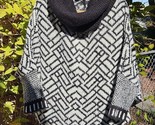 Wooden Ships Wool Mohair Blend Poncho Sweater Size M L Black Cowl Neck Pullover Black and cream geometric design Sleeves have a slight flare to the cuff, fit to the wrist Cowl neck Made in Bali, designed in NYC and Colorado 76% acrylic 12% mohair 12% wool Women's Size Med/Lrg Approximate (flat) Measurements: 50" from seam to seam, just where the actual sleeve starts 12" funnel/collar Length 30" (from neck seam, center back) Sleeve 9" (fits like a long sleeve) No fuzzing/pilling. No holes, stains, or other flaws to note All used clothing items have been cleaned to standards Smoke free, pet friendly home