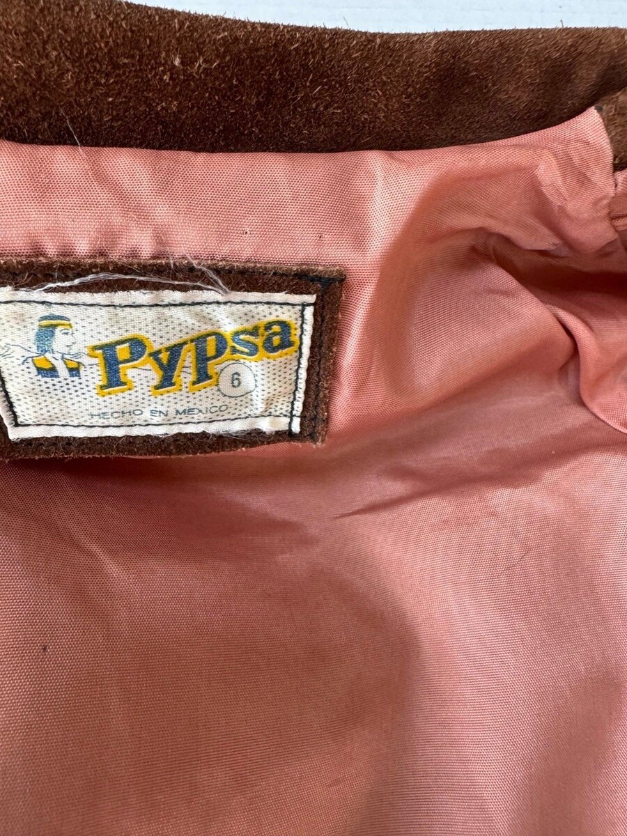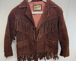 Youth Kids Vintage 90's Dark Brown Leather Fringe Button Up Western Jacket Sz 6
