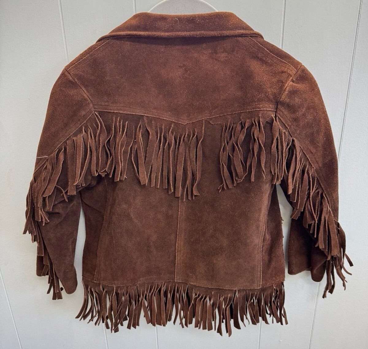 - Youth Kids Vintage 90's Dark Brown Leather Fringe Button Up Western Jacket Sz 6