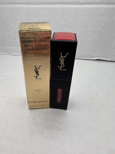 Yves Saint Laurent Rouge Pur Couture Vinyl Cream Lip Stain Shade 412 ROSE MIX. Labeled as a tester. It is new in box. Box has some light scratches.