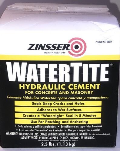 - Zinsser WaterTite Hydraulic Cement 4 Concrete/Masonry 2.5 Lbs-Seals Cracks/Holes